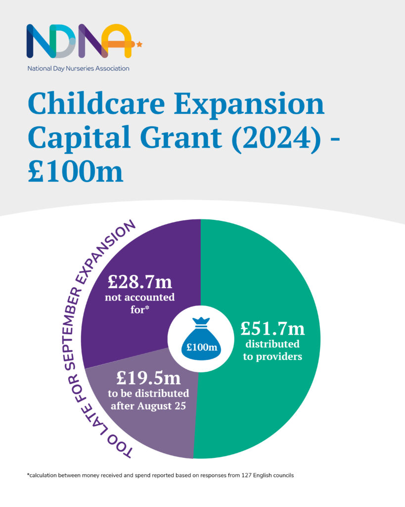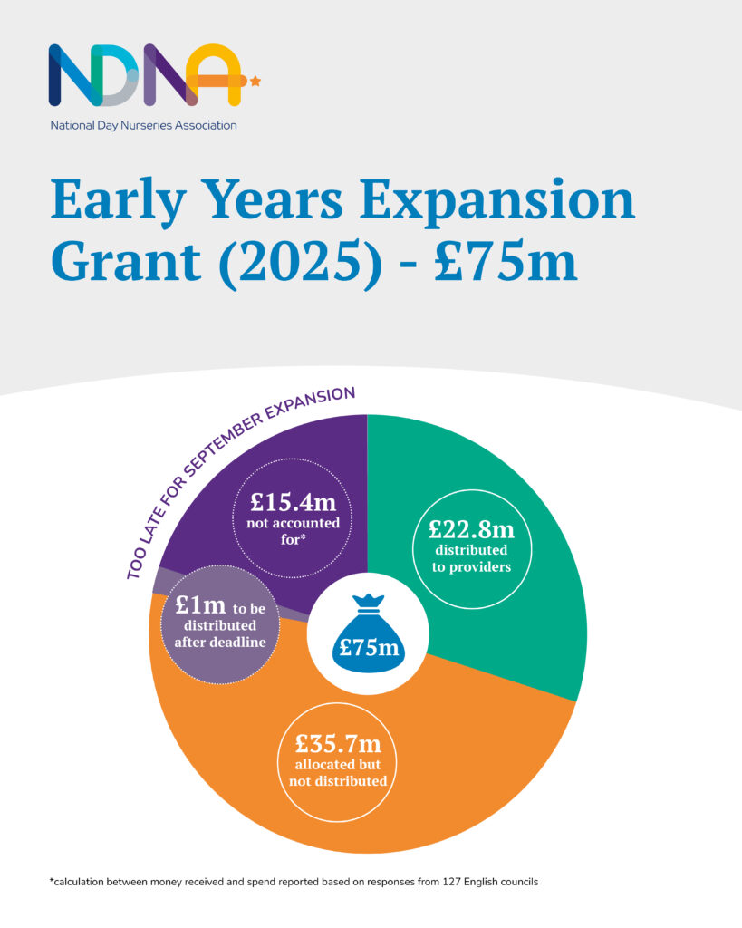 The Early Years Expansion Grant of more than £75 million was announced in December 2024. However, less than a third of this money had been distributed by councils by early August.