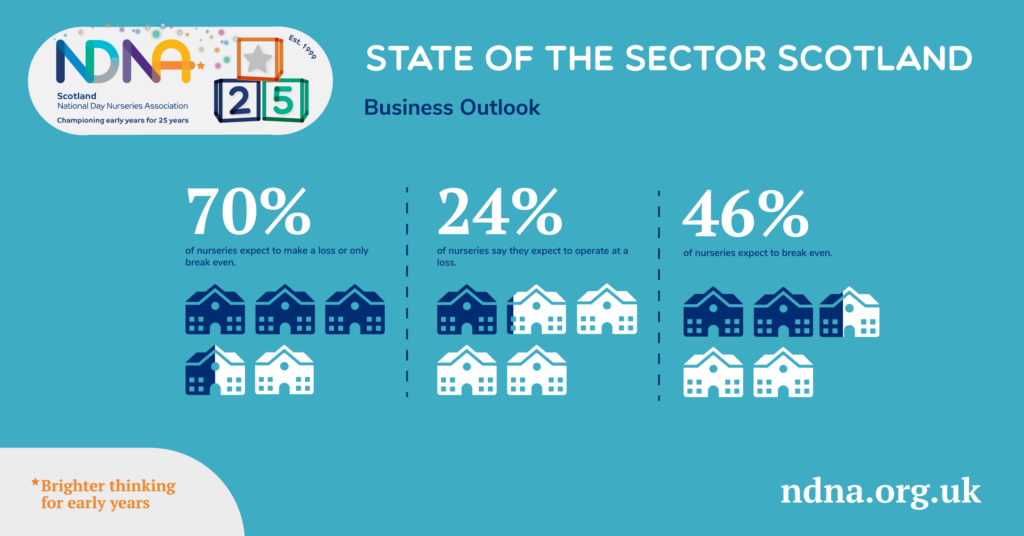 As a result, seven in ten nurseries (70%) expect to make a loss or just break even, making it more difficult for them to invest in their setting premises, learning resources and staff development.