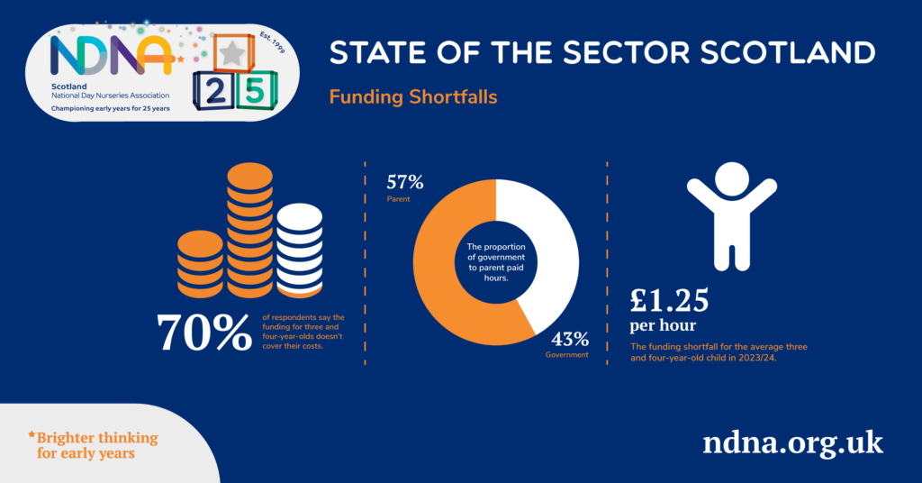 The vast majority of private and voluntary nurseries in Scotland say that the local authority funding rate doesn’t cover their costs for delivering early learning and childcare (ELC) places, according National Day Nurseries Association (NDNA) Scotland.