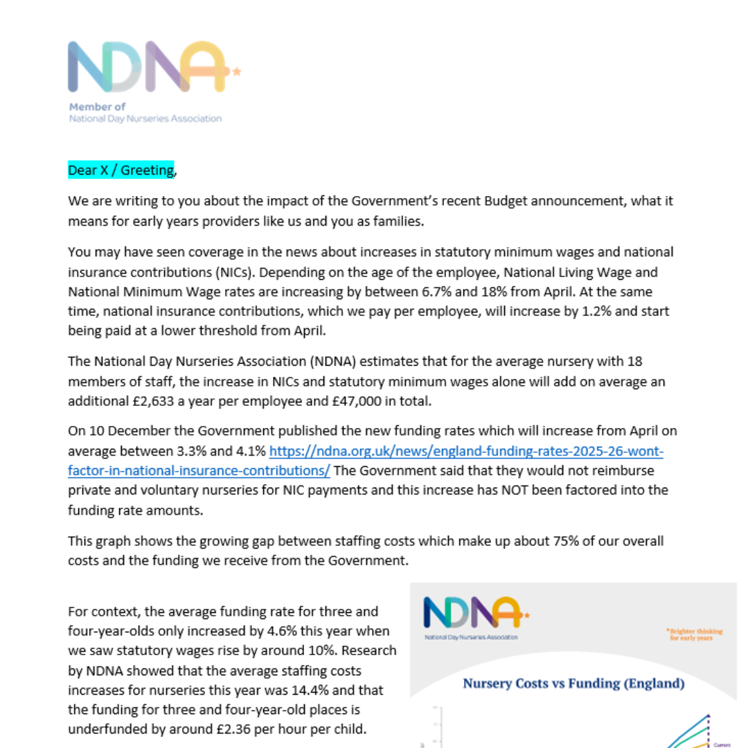 NDNA members can access a template letter to parents that addresses concerns around the April 2025 charging parents guidance here.